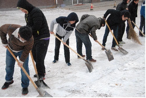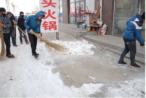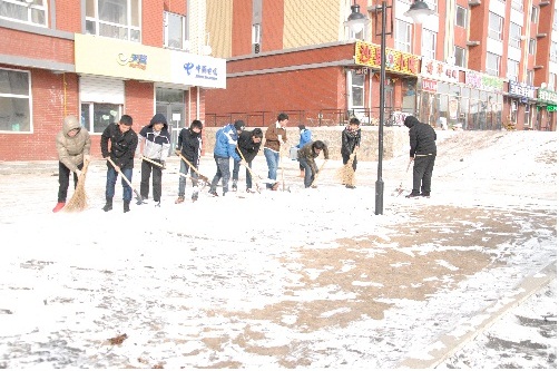 青年志愿者协会每年的三月雷锋周都会组织相关活动,而今年的活动形式是对公司对面湾畔小区人行道积雪进行清理。中午十二点整,青协志愿者们来到实验楼门口,在领取青协为雷锋日特别制作的袖贴及扫雪工具之后大家便投入到志愿活动当中。一部分志愿者们在路旁那向过往同学进行宣传“雷锋日”及雷锋精神,发放雷锋袖贴,鼓励大家加入志愿活动;另一部分志愿者开始对小区周围人行道的积雪进行清理。在活动中,志愿者们通过自身的实际行动来呼吁大家互帮互助,构建和谐“领里”关系。