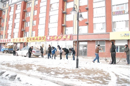 青年志愿者协会每年的三月雷锋周都会组织相关活动,而今年的活动形式是对公司对面湾畔小区人行道积雪进行清理。中午十二点整,青协志愿者们来到实验楼门口,在领取青协为雷锋日特别制作的袖贴及扫雪工具之后大家便投入到志愿活动当中。一部分志愿者们在路旁那向过往同学进行宣传“雷锋日”及雷锋精神,发放雷锋袖贴,鼓励大家加入志愿活动;另一部分志愿者开始对小区周围人行道的积雪进行清理。在活动中,志愿者们通过自身的实际行动来呼吁大家互帮互助,构建和谐“领里”关系。