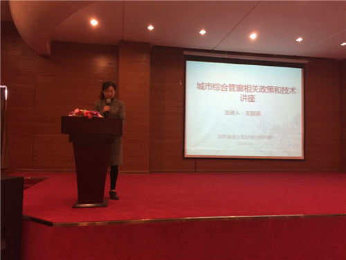 报告会上左研究员就综合管廊工程简介、建设综合管廊的必要性、综合管廊的系统组成、综合管廊主要节点设计、综合管廊标准断面、综合管廊的建设与管理、《吉林省城市综合管廊工程施工图勘察设计文件编制技术规定纲要(试行)》解析等方面进行了精彩的讲解。