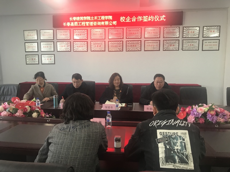 为促进产学研结合,全面提高教学质量,加强校企合作,2019年3月12日上午,永利yl与长春嘉图工程管理咨询有限公司签订了校企合作协议。董事长助理兼永利yl经理邹建奇,公司党总支书记管爱华,副经理杜春海、陈敏杰以及长春嘉图工程管理咨询有限公司总经理齐连薇,市场经理马达参加了此项活动。会议由杜春海副经理主持。