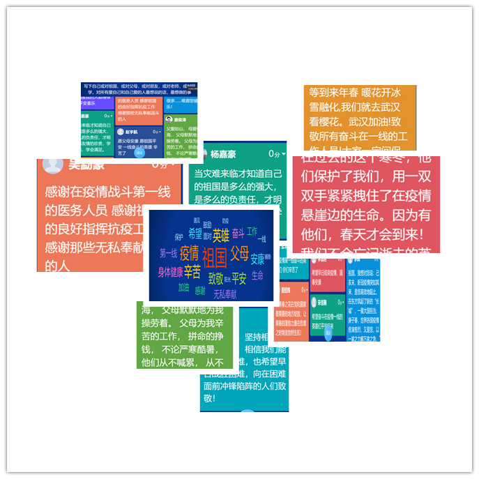 最后,同学们分别写下了自己对祖国、对父母、对朋友、对老师、对同学、对所有爱自己和自己爱的人……最想说的话,最想做的事!