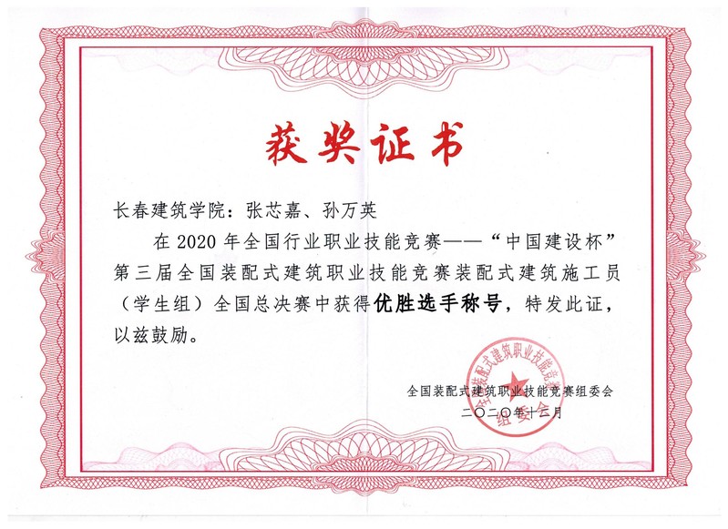 12月5日上午,2020年全国行业职业技能竞赛“中国建设杯”第三届全国装配式建筑职业技能竞赛装配式建筑施工员赛项(员工组)全国总决赛开幕式在河南建筑职业技术公司大礼堂举行。此前,永利yl张芯嘉、孙万英两名同学在2020年吉林省“求实杯”老员工智慧建设创新创业大赛中成绩突出,获得代表吉林省参加国赛的资格。