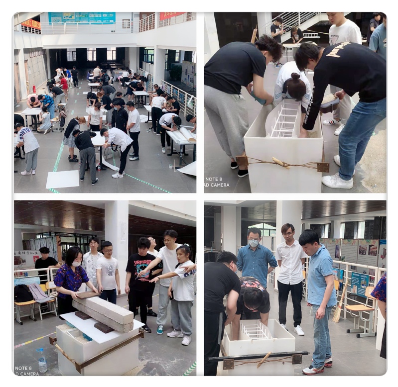 本次竞赛题目为“深基坑支护模型”,分为设计、计算、制作和加载实验。本次竞赛组委会为参赛选手统一提供器材和模型制作材料,评委在加载场地进行监督评审。每个队伍都齐心协力,精诚合作,圆满完成竞赛各个环节。经过一天的激烈角逐,最终评选出特等奖1名,一等奖2名,二等奖5名,三等奖8名。