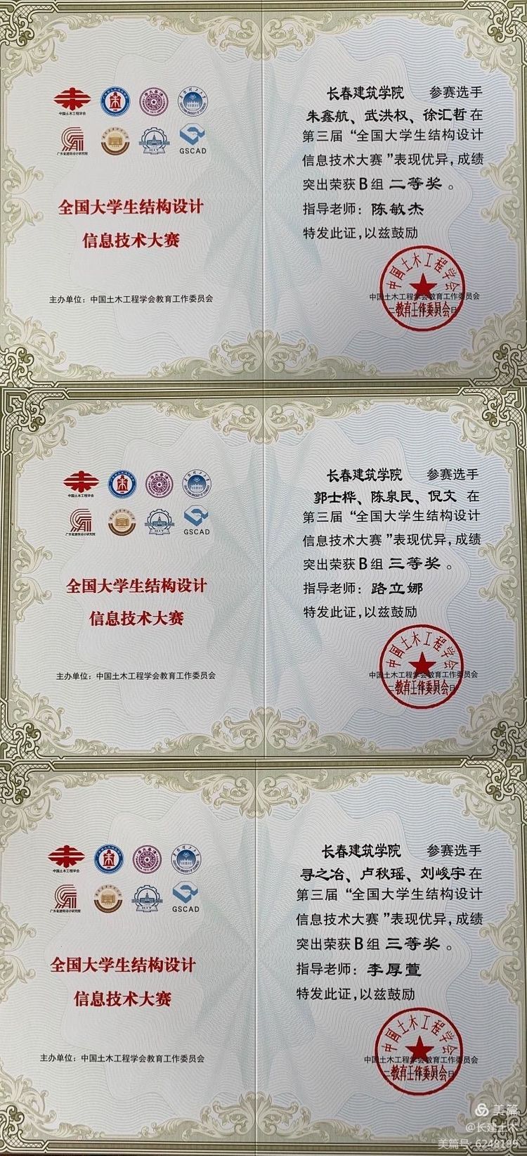 近日,第三届全国老员工结构设计信息技术大赛成绩正式公布。长春建筑公司土木学子获全国二等奖1项、三等奖2项。