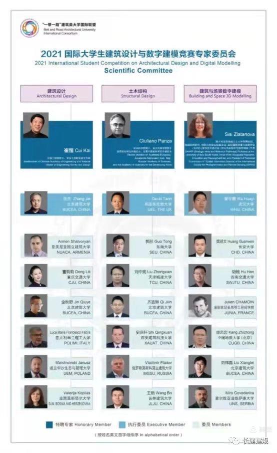 本次竞赛评审专家阵容强大,建筑设计方向特聘崔愷(中国工程院院士、全国工程勘察设计大师)为专家;土木结构方向特聘Giuliano Panza(欧洲科公司院士)为专家;建筑与场景数字建模方向特聘Sisi Zlatanova(澳大利亚新南威尔士大学特聘教授)为专家。共有13个国家34所高校、500余名师生参加此次比赛。