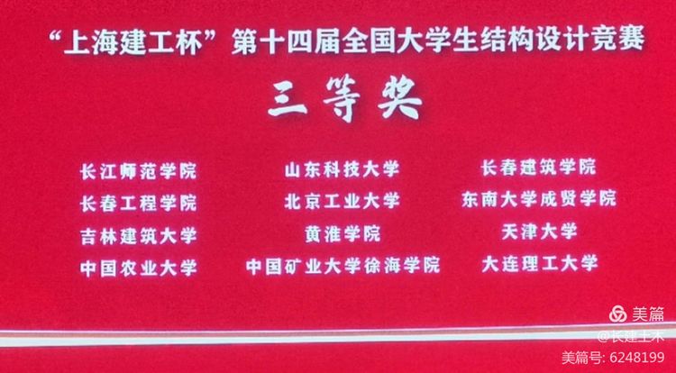 本届竞赛是由中国高等教育学会工程教育专业委员会、高等公司土木工程学科专业指导委员会、中国土木工程学会教育工作委员会、教育部科学技术委员会环境与土木水利学部主办,上海交通大学承办。共有来自550所高校的1148支队伍参赛,最终有111所公司的112支队伍进入国赛,由于受疫情影响,黑龙江赛区的四只队伍在线上同步进行本次比赛。公司在7月份吉林省分赛区中的26支队伍中荣获特等奖,连续五年代表吉林省土木工程类高校参加国赛。