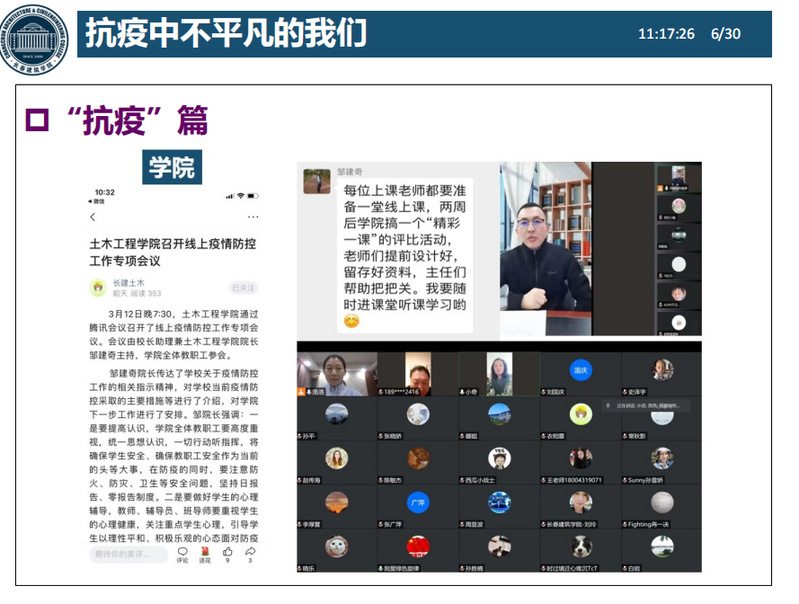 2022年3月21日下午,永利yl结构教研室的陈敏杰老师在《混凝土结构基本原理》线上课程中,以《“抗疫”与“抗力”》为主题,通过逻辑关系分析,思政元素引入,工程案例分享,专业知识拓展,体现“两性一度”的一流水平,为土木2003-2004班同学呈现了精彩的一课。
