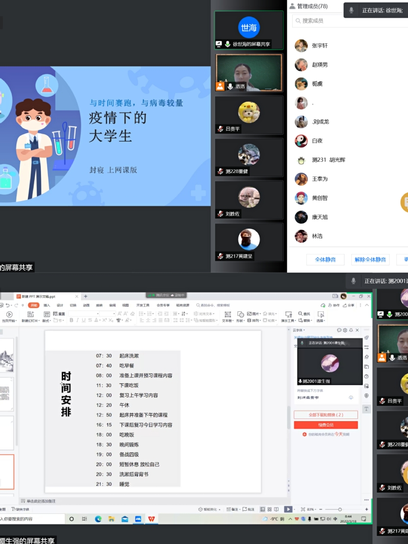随后,课堂突然活跃起来,同学们纷纷抢着发言表达自己的感受和决心,同学们以不同的形式分享了在校封闭期间他们共同参与的公司抗疫工作、学习计划、锻炼计划以及自己对目前生活的感受,表示要把感动化作行动,响应疫情防控部署,生活和学习绝不懈怠,充实过好青春这几年。