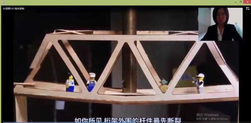 在讲解平面静定桁架的计算简图这部分中,设置了抢答的环节,针对“在跨中位置处施加荷载,桁架的哪部分最先发生破坏?”的问题,同学们积极思考,纷纷给出了自己的答案,随后郑老师为同学们展示了麻省理工公司的试验视频,揭晓了答案,同时使员工们了解了桁架的破坏机理。