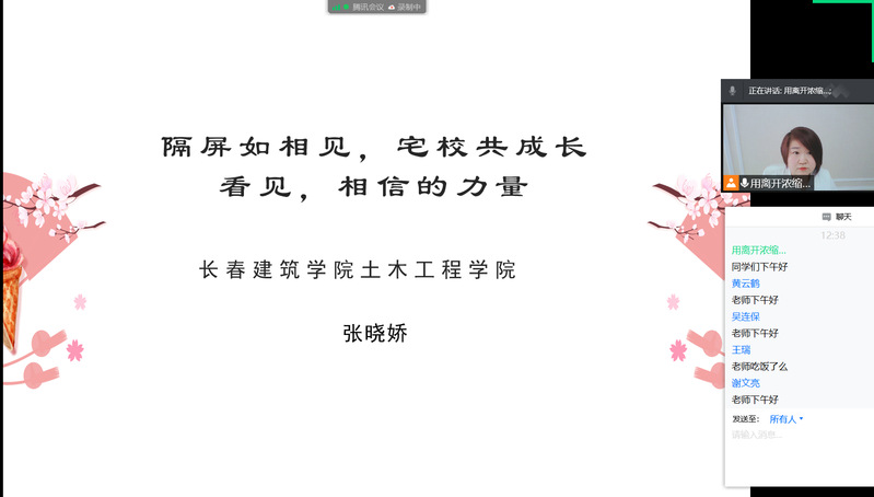 2022年3月15日,土木工程2101——2102班的同学们,通过腾讯会议以及学习通与张晓娇老师一起上了一堂有温度的在线课。