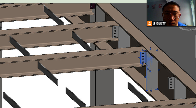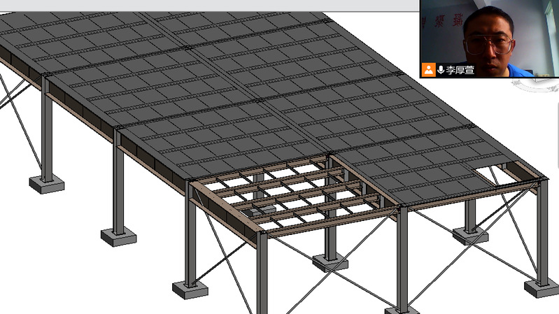 李老师在本节课里融入了多元化的教学方式,在学习通和腾讯会议正常授课的同时,引入了BIM相关软件辅助教学,BIM软件的三维实体模型让同学们对知识点有更加直观的认识,更加清晰地掌握了本节课钢平台构件的空间位置和连接方式。同时,在课中李老师利用教具模型授课,使得同学们虽然在屏幕的另一端,也能对知识点有最充分的理解。这种多元化教学手段的应用,让相对晦涩的知识、枯燥的课程都充满了色彩。