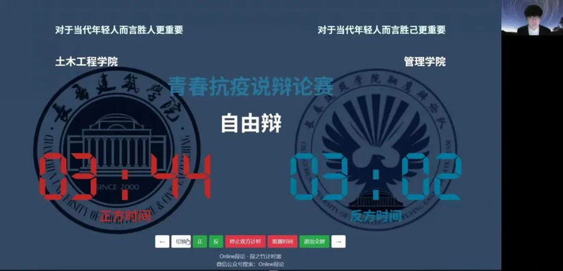 2022年4月17日18时,yl23411永利“青春抗疫说”线上辩论赛决赛如期举行。永利yl代表队吴彦、张赛文、吴若愚和陈月博4名队员初赛和复赛高比分胜出后,与管理公司代表队展开了最终的“对决”。