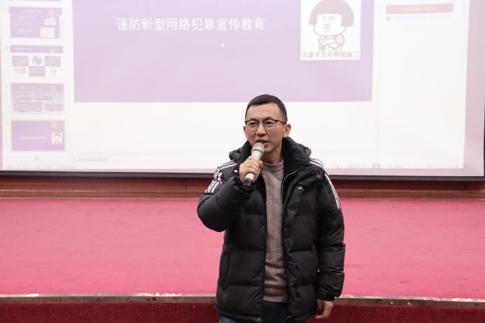 最后,王勇副书记对李一鸣警官的精彩授课表示感谢,希望同学们通过本次宣讲,能够进一步增强对网络电信诈骗的防范意识,提高对网络电信诈骗的识别能力,守护好自己的账户财产安全,不轻信、不轻转,并且通过自己的宣传辐射帮助身边的朋友和同学远离电信诈骗,为打造风清气正、平安和谐的校园环境贡献自己的智慧和力量。