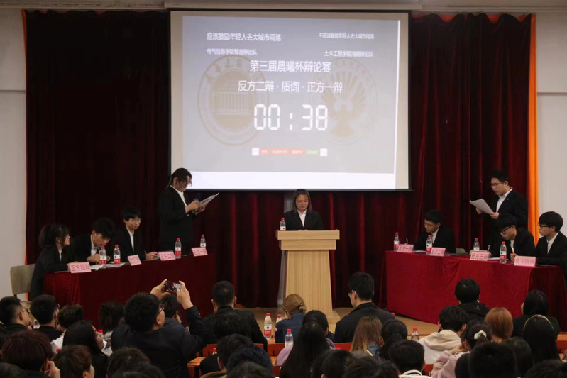 在决赛中,永利yl与电气信息公司激烈讨论了“应不应该鼓励年轻人去大城市闯荡”的问题,我方认为不应该鼓励年轻人去大城市闯荡,年轻人去大城市闯荡要付出很大代价,但这部分代价年轻人往往承受不起。本次比赛采取四对四团体辩论制,总共设有七个环节,分别为:开篇立论环节、质询环节、盘问环节、评委提问环节、自由辩论环节、观众提问环节、总结陈词环节。整场比赛我方辩手李明晔、张煜哲、赵龙一以及孙皓恩,状态饱满,思路清晰,逻辑严密。立论、攻论、结辩每个环节都扣人心弦、发人深思,为观众献上了一场酣畅淋漓,思维碰撞,有理有据的视听盛宴。