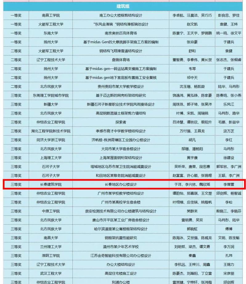 由中国建设教育协会主办,东南大学承办,北京迈达斯技术有限公司协办的第三届全国高校土木工程创新设计大赛,自2022年11月大赛报名开始以来,历经7个月的精彩激烈角逐,终于圆满落幕。在竞赛中我校永利yl李厚萱老师指导的3位同学(于洋 魏欣瑶 李兴林)荣获大赛三等奖!