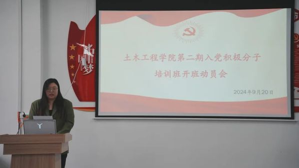 组织员王一然老师宣读事项。王一然对此次培训班的课程安排、培训要求和组织纪律进行强调。同时,她对学员考勤、课堂纪律和学业考核等方面进行了解读,她表示入党积极分子培训班为入党积极分子提供了宝贵的学习机会,这有助于在座的各位加深对党的认识,强化对入党程序的认识,提高党性觉悟。王一然老师希望每一名入党积极分子都能够端正入党动机,认真对待党课培训,努力学习党的理论知识,提高思想修养,自觉遵守规章制度。