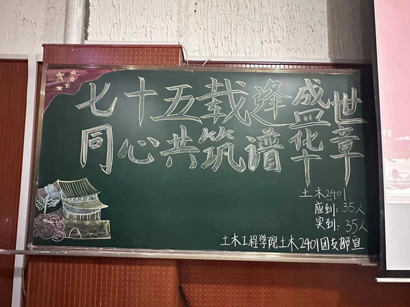 随后,各班团支书带领同学们观看《有幸!我们何其有幸,见证这如愿的盛世繁华》视频。视频中,历史的画卷徐徐展开,带我们回顾了中华人民共和国成立75年来的风雨历程。从曾经的一穷二白到如今的繁荣昌盛,这一路走来,充满了艰辛与奋斗,更饱含着无数的希望与梦想。同学们纷纷表示,我们要以先辈为榜样,传承他们的爱国精神和奋斗精神。在面对困难和挑战时,不退缩、不放弃,勇敢地迎难而上。为祖国的繁荣富强贡献自己的青春智慧和力量,共同谱写中华民族伟大复兴的壮丽华章。
