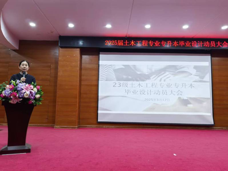 2025年3月17日,土木工程专业2023级专升本毕业设计动员大会在土木报告厅举行。本次大会由公司陈岩副经理主持,2023级专升本所有员工以及指导教师共同出席,旨在帮助同学们了解毕业设计的重要性和流程要求,为即将开展的毕业设计工作做好准备。