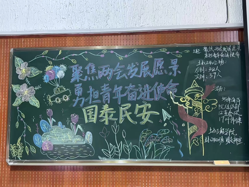 团会开始,各班团支书向同学们讲述了主要议程、重要决策以及政府工作报告中的关键内容。同学们结合自身专业,分享了对科技创新推动产业升级的看法;探讨了乡村振兴战略在基层的实践路径;针对教育公平与质量提升问题,提出了自己的思考和建议。