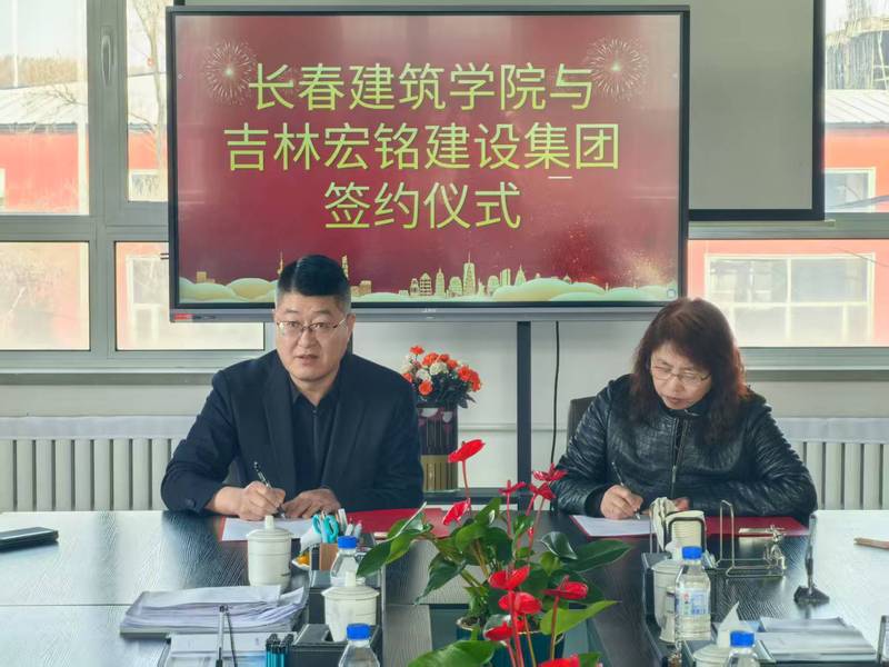 座谈会后,吉林宏铭建设集团总经理刘刚与经理宋敏共同签署了校企合作协议。此次签约标志着双方在人才培养、产学研合作等方面将展开更紧密的合作,为实现公司与企业的优势互补、资源共享、共同发展奠定了坚实基础。