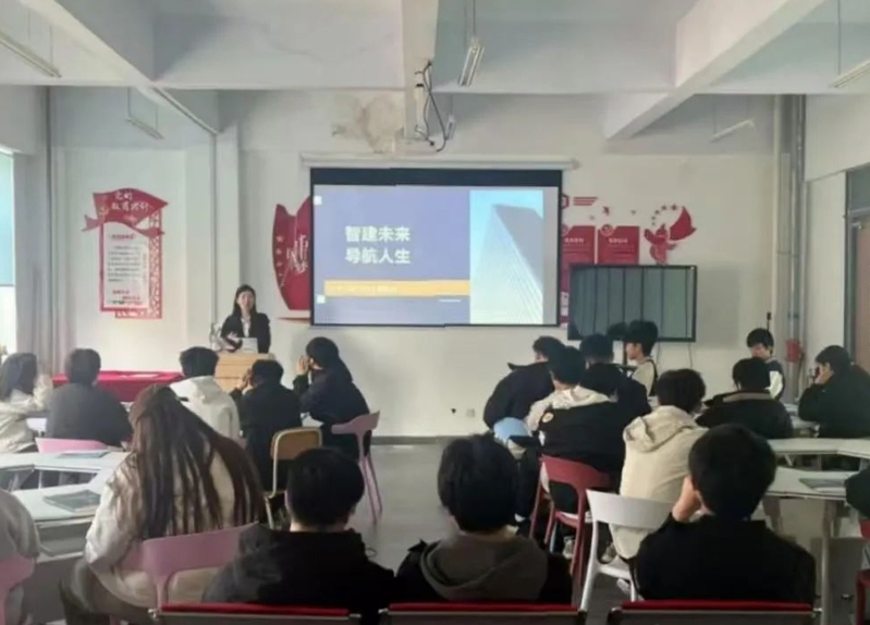 案例分析环节将理论知识与工程实践紧密结合。活动重点展示了多项智能建造核心技术在实际工程中的应用成果:以上海中心大厦为例,详细解读了BIM技术在超高层建筑建造中的协同优势;通过南京江北新金融中心项目,阐述了物联网技术在结构健康监测中的创新应用;结合ALICE智能平台,分析了AI技术在工期预测精度提升方面的突破性进展。刘老师特别以深圳某智慧工地为案例,深入浅出地讲解了数字孪生技术在施工过程实时监控和质量安全管理中的实践价值。班级团支书张浩翔同学也分享了自己的行业观察,强调了智能建造技术对提升工程质量和效率的重要作用。