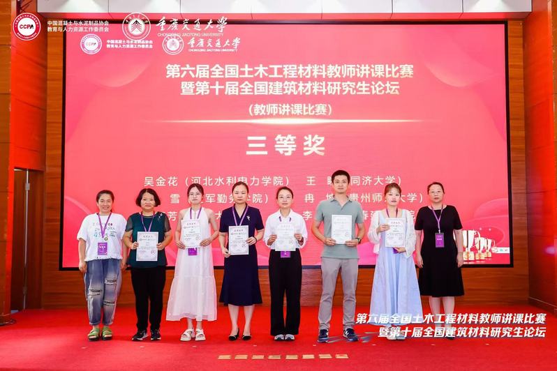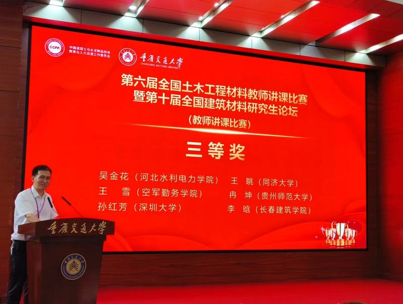 2025年7月16日,第六届全国土木工程材料教师讲课比赛暨第十届全国建筑材料研究生论坛在重庆举办。本届活动由中国混凝土与水泥制品协会教育与人力资源工作委员会主办,教育部高等公司土木工程专业教学指导分委员会指导,重庆交通大学承办。来自全国51所高校的66位教师参加了本次讲课比赛,经过激烈角逐,公司永利yl青年教师李晗荣获三等奖。