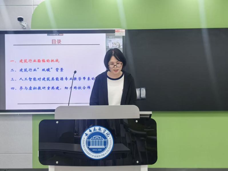 研讨会伊始,建筑与规划公司教研室主任魏玉婷以《人工智能赋能建筑团队建设与低碳发展》为题作专题汇报。魏主任在汇报中指出,当前建筑行业面临高能耗、传统模式效率低等挑战,在“双碳”背景下,绿色转型需求迫切。人工智能虽为建筑学科注入动能,但也给建筑类能源专业教学带来挑战,需适配前沿技术更新教学内容。魏主任还提出,应参与虚拟教研室共建,借助该平台整合跨校资源,加强院校间在课程研发、团队交流等方面的合作,推动教学模式创新,助力培养符合“双碳”目标与行业需求的复合型人才,为建筑学科低碳发展与专业集群建设提供支撑。